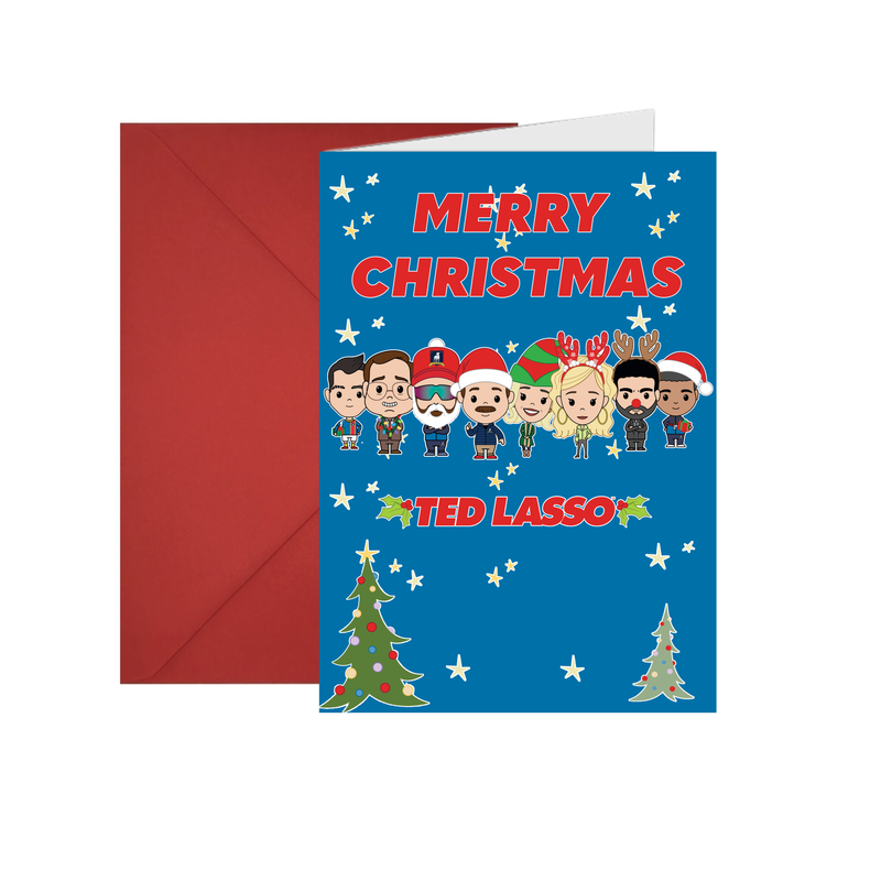 Christmas Card- Ted Lasso Cast Spread festive cheer with this playful Ted Lasso Christmas card featuring the entire cast. Sized at 105 x 150 mm, it perfectly captures the show's lovable spirit, making it a fun and memorable way for fans to share holiday greetings.