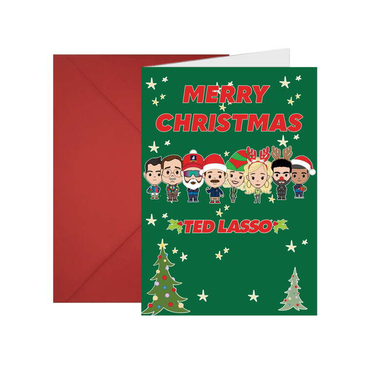 Christmas Card- Ted Lasso Cast Spread festive cheer with this playful Ted Lasso Christmas card featuring the entire cast. Sized at 105 x 150 mm, it perfectly captures the show's lovable spirit, making it a fun and memorable way for fans to share holiday greetings.